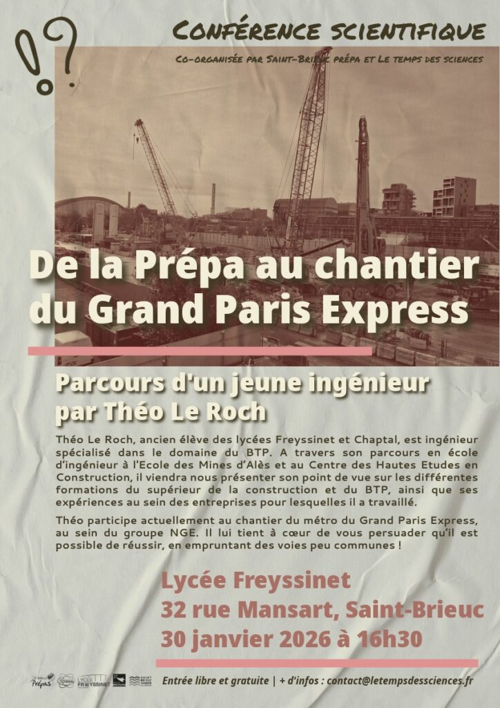 Organisée en partenariat avec l’association Saint-Brieuc Prépas, la rediffusion de la conférence est disponible sur la chaine YouTube du Temps des Sciences.